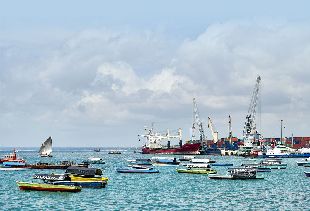 这是2024年12月8日在坦桑尼亚桑给巴尔岛拍摄的桑给巴尔港一隅