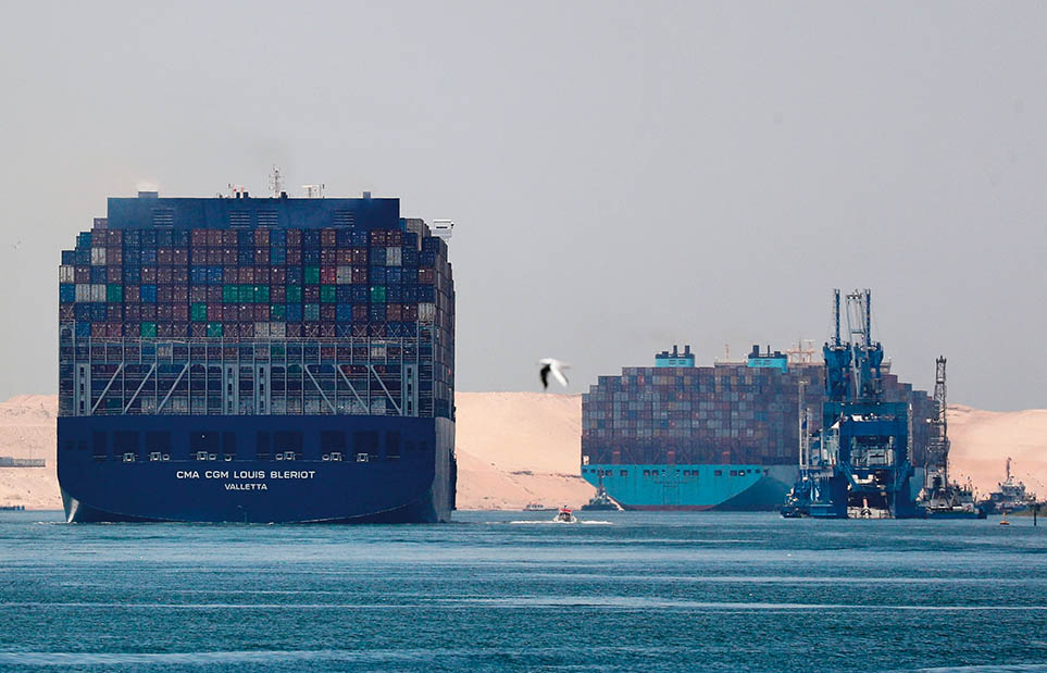 埃及苏伊士运河管理局2021年11月4日发表声明说,苏伊士运河的船舶通行费将于2022年2月提高6%,液化天然气船和邮轮除外。这是2021年7月7日,货轮航行在埃及伊斯梅利亚省的苏伊士运河上