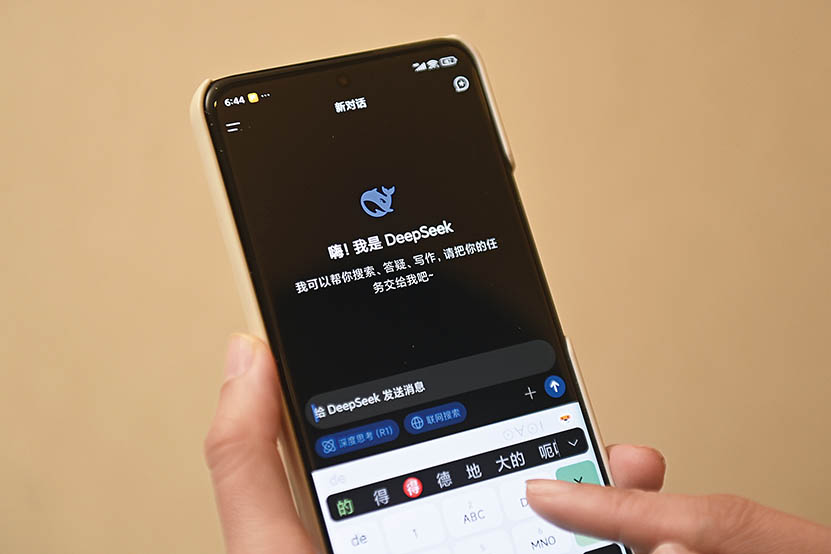 用户在DeepSeek手机客户端上提问(2月17日摄)
