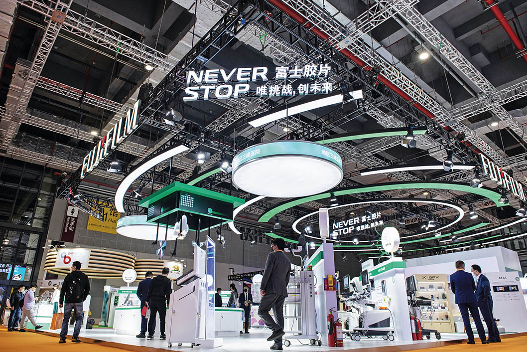 这是2024年11月8日拍摄的第四届中国国际进口博览会技术装备展区的日本富士胶片集团展台
