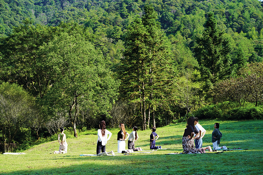 雨后的潮湿空气、奔涌的溪流声与风铃的泛音相互应和,鼻腔里充斥着泥土与檀香的混合气息,而最清晰的声音是我的心跳声——坐在武夷山竹林里一间没有墙壁的冥想教室里,这一刻,我猛然找回了我自己。