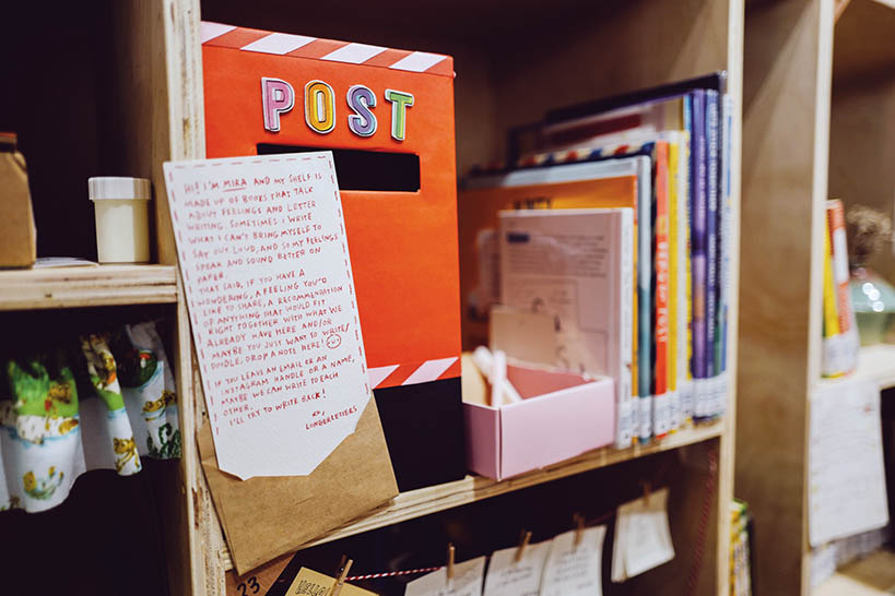 除了书,许多格子的主人还会放一张卡片,写上自己是谁、在想什么。Peiyi把她的书都包上了牛皮纸,希望大家不要以貌取书;Rachael放了很多本超过500页的书,卡片上说要用大部头“对抗注意力的日益衰减”;“会缝纫、编织、用陶土做碗、在篝火上炖菜、识别蘑菇能不能吃”的Steffi,摆了一堆书教人在森林里如何活下来。还有些话会在卡片里频繁出现,比如“我从小就想开家书店”!