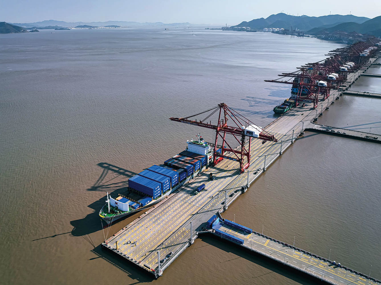 2024 年 12 月 30 日,执行“中欧快航”航线首航的“嘉华宁波”轮停泊在宁波舟山穿山港区(无人机照片)