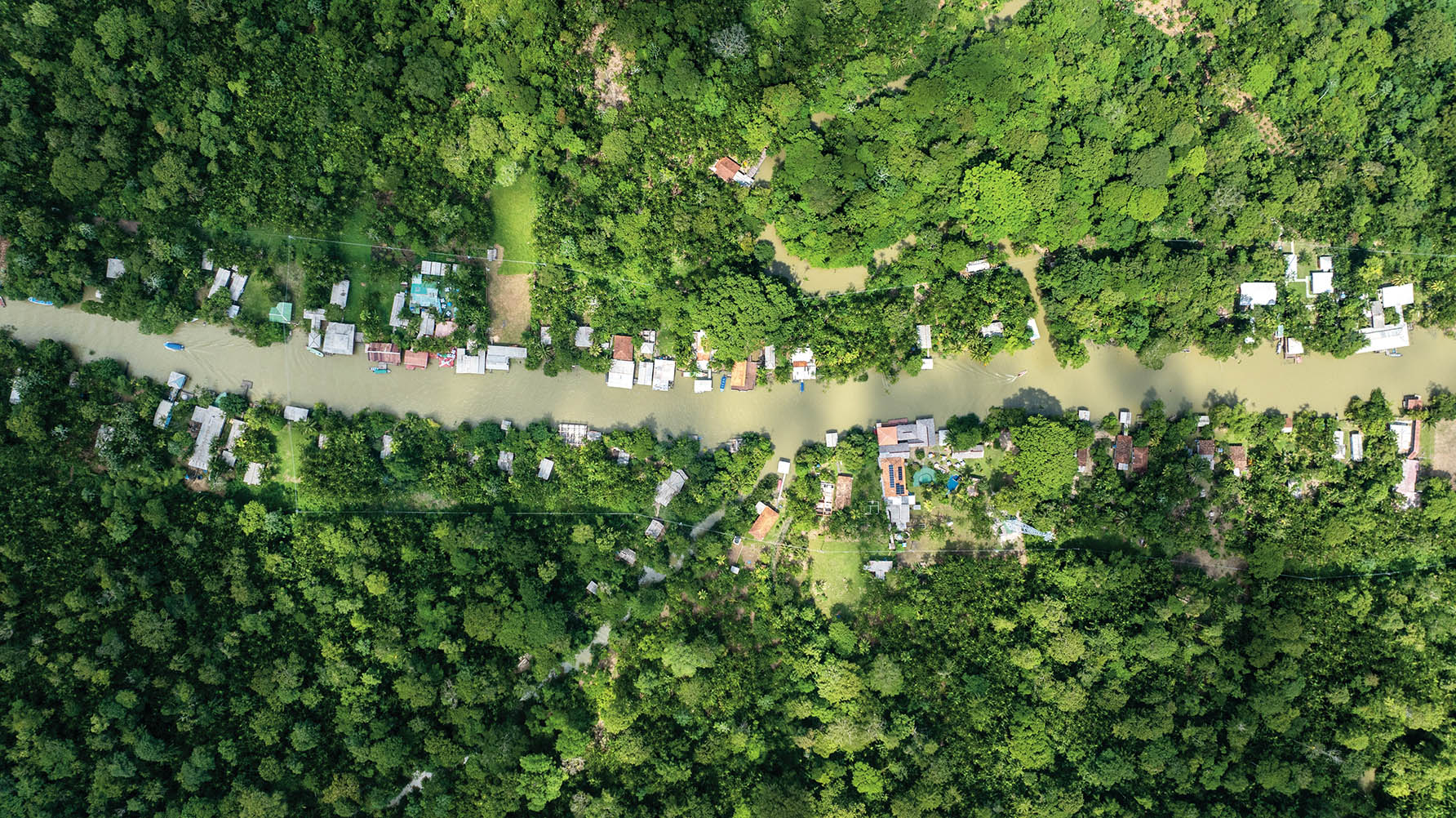 2025年11月16日,在巴西北部城市贝伦拍摄的热带雨林和河道