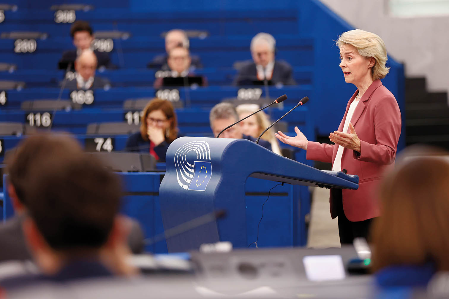 2026年3月11日,欧盟委员会主席冯德莱恩在法国斯特拉斯堡举行的欧洲议会全会上讲话,她表示,美国和以色列对伊朗发动的军事打击导致中东局势紧张,至少给欧洲民众带来数十亿欧元损失