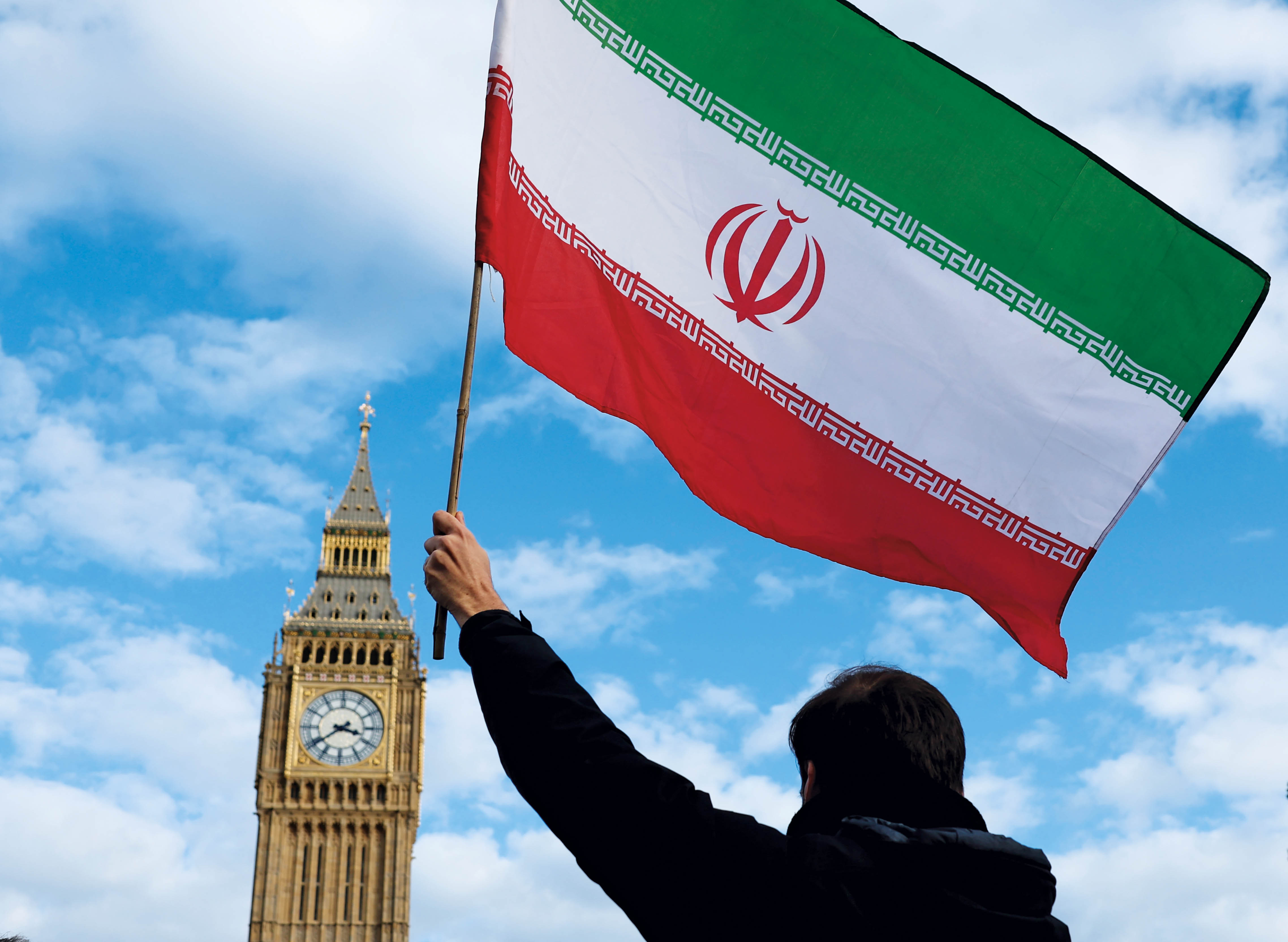 2026年2月28日,民众在英国伦敦议会广场举行示威,抗议美国和以色列军事打击伊朗