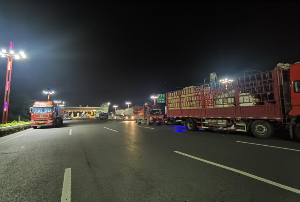 3日凌晨,在盐洛高速泗县收费站,不时有运送矿泉水、蔬菜、方便面等物资的车辆进入泗县。除了必要的疫情防控车辆,路上几乎见不到其他车辆。
