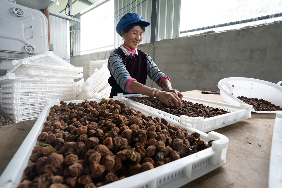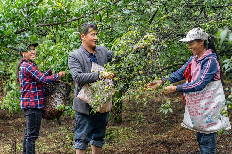在松鹤村,就有一家规模不小的梅果加工厂,负责人罗筛雄介绍,工厂每年要加工500到600吨鲜梅,务工人员几乎都是附近的村民,每年用工支出在25万元到30万元之间,带动了不少乡亲“家门口就业”。