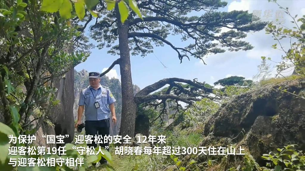 生长在海拔1670米处的迎客松是安徽黄山的标志性景观,也是安徽的形象标识之一。为保护“国宝”迎客松的安全,12年来,迎客松第19任“守松人”胡晓春每年超过300天住在山上,与迎客松相守相伴。