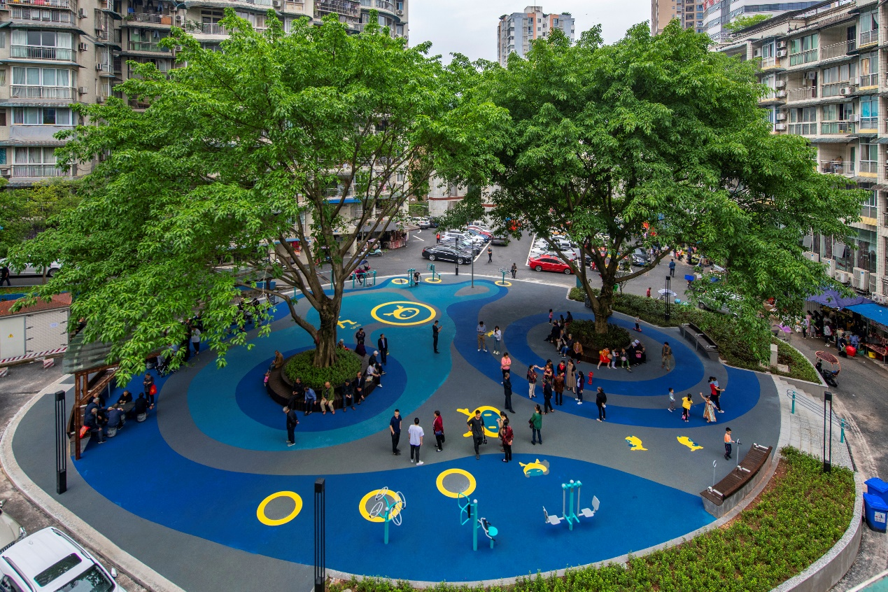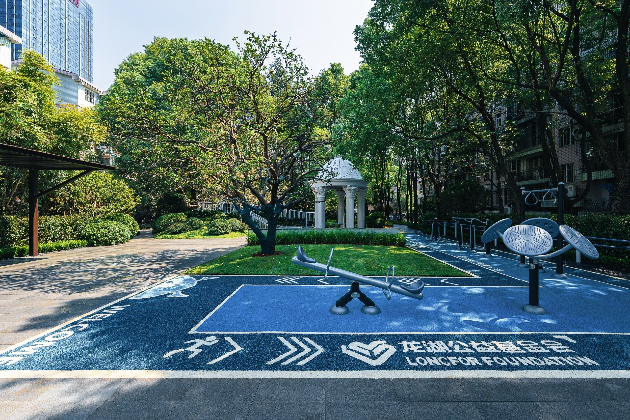 在福建省晋江市陈埭镇,为解决镇上老人们的养老痛点,由龙湖公益基金会出资,通过与有关部门的密切配合,将镇上一处旧楼拆除后的废弃用地,改建成一座小型适老化社区公园,为当地老人小孩们增添了安全的去处。