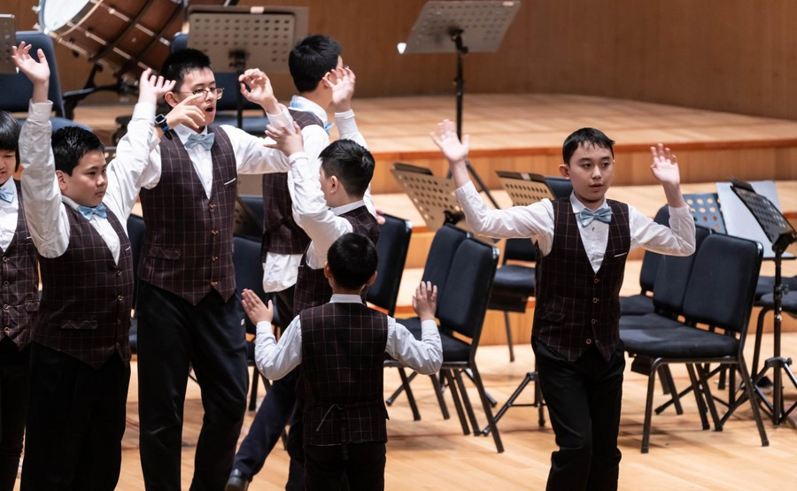在一年一度的汇报演出中,自闭症孩子们走上舞台,演奏钢琴、马林巴、长号、单簧管等多种乐器,表演集体舞、珠心算、中英文短剧等各类节目。他们的表演充满感染力,展示出更多的自在和自信。