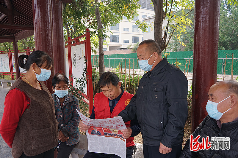志愿者在磁州镇北来村宣讲党的二十大精神。
