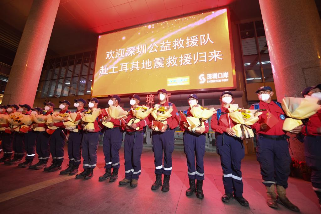 当日,深圳公益救援队赴土耳其参与地震救灾行动的22名队员结束了为期11天的救援工作,平安回国。