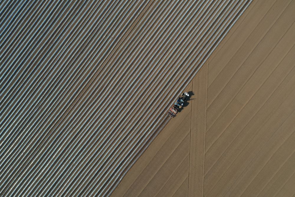 在兰陵县南桥镇,无人驾驶一体机时下正加紧播种土豆。南桥镇自1995年试种半亩“订单土豆”开始,经过二十余年的发展,“订单土豆”种植面积已达1.2万亩。