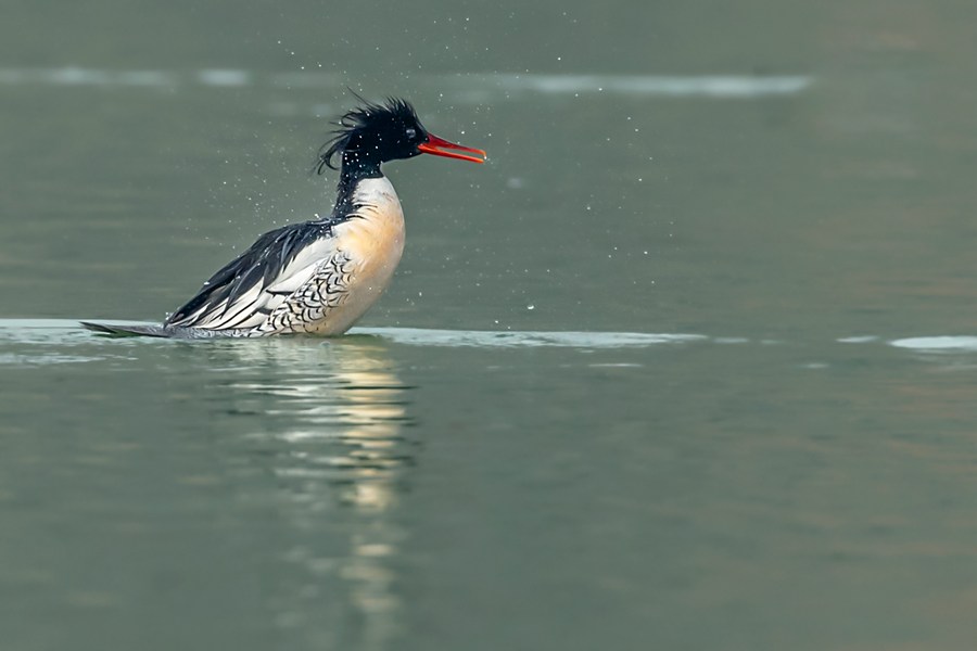 在北京平谷水域拍摄的一只中华秋沙鸭(2022年3月9日摄)。新华社发