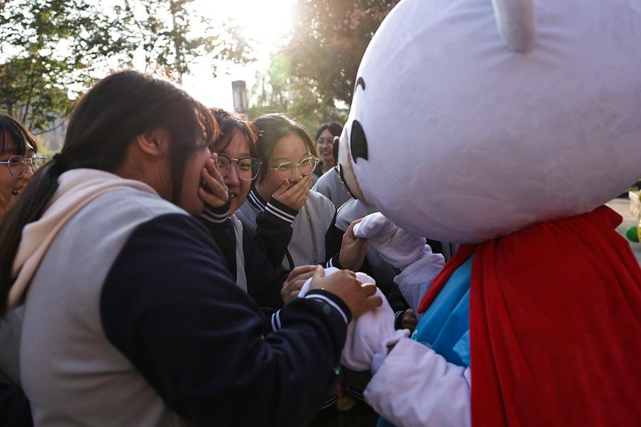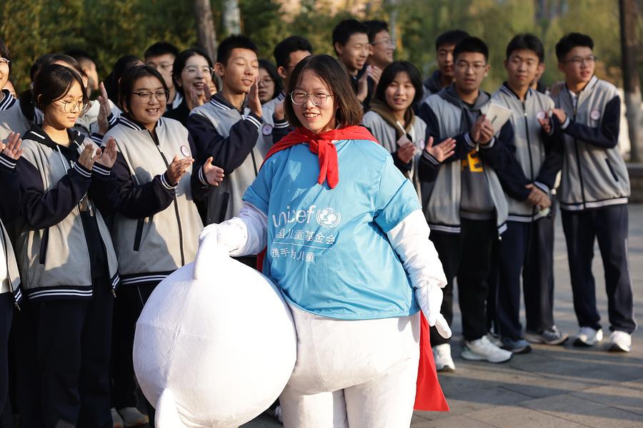 10月23日,山东省章丘四中的学生参加心理健康户外活动。11月20日是世界儿童日,今年世界儿童日的主题是:倾听每个心声,点亮儿童未来。新华社记者 张玉薇 摄