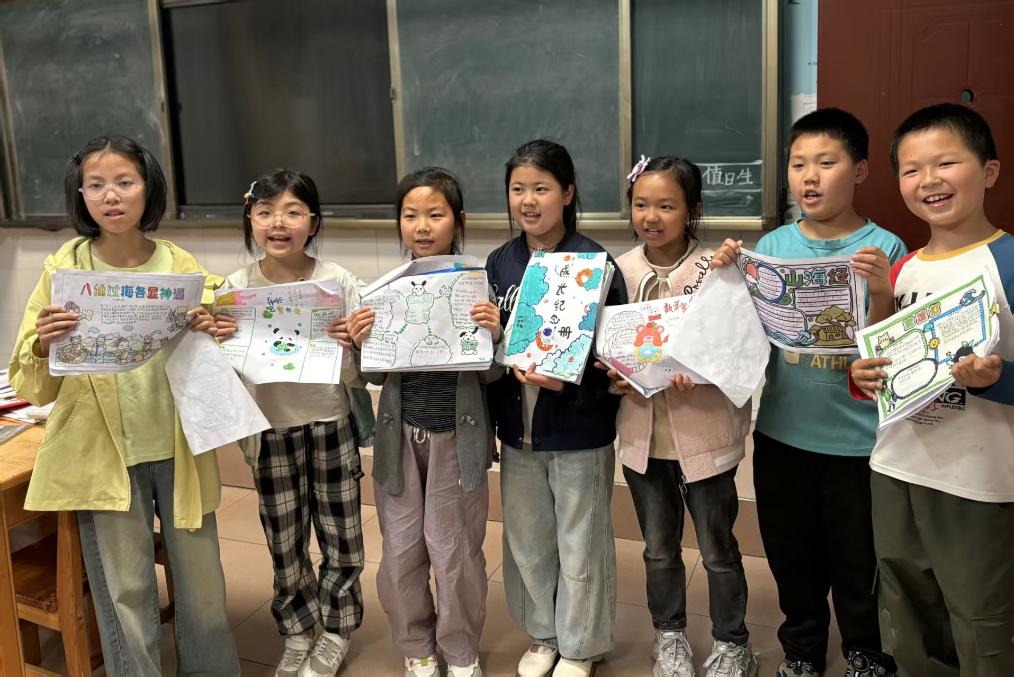 除了读有字的万卷书,范家小学还开设了乡土探究课程,让孩子们在乡土田野读“无字”之书,汲取家乡山林土地的养分。师生们到村子里调研、走进大自然,摘野菜、认识中草药、编写家乡童谣集,探索大自然的奥秘。