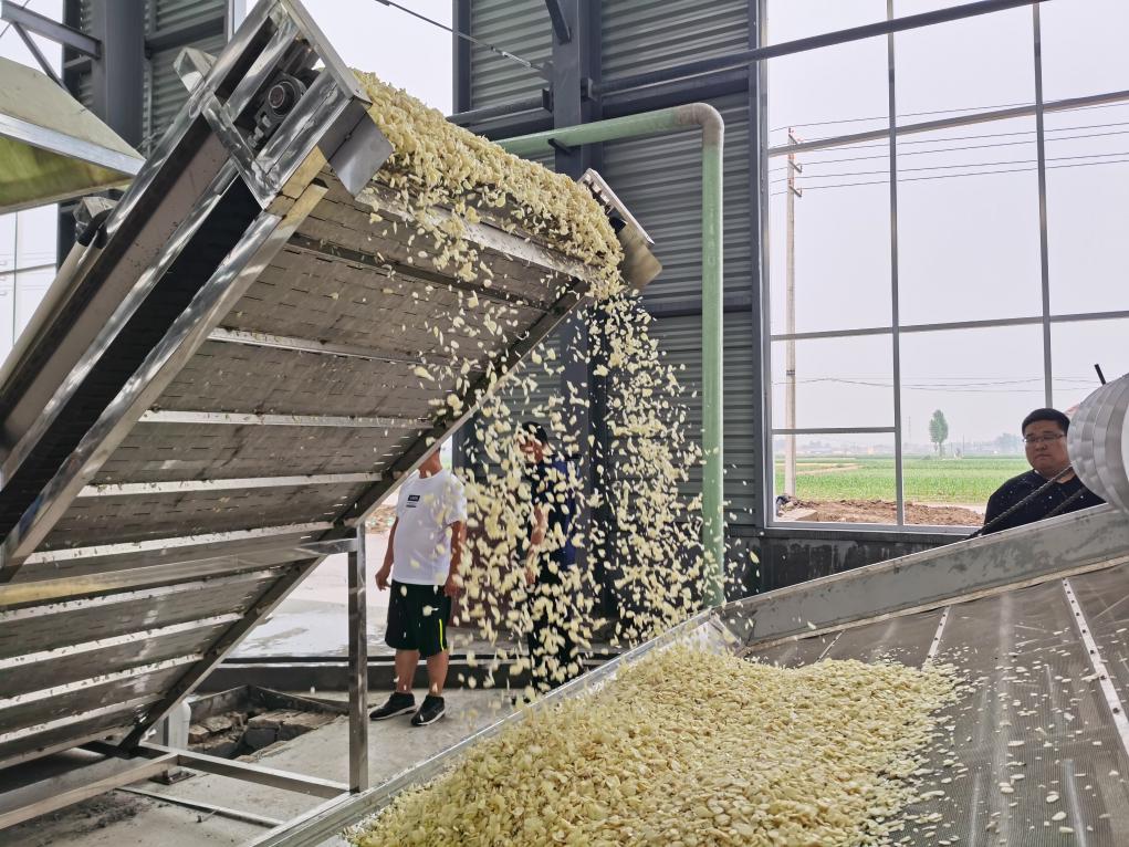 种出了好产品,深加工带来更高收益。在济南商玉宝食品科技有限公司的蒜片烘干车间,工人们正在对烘干后的蒜片进行分选、装袋。