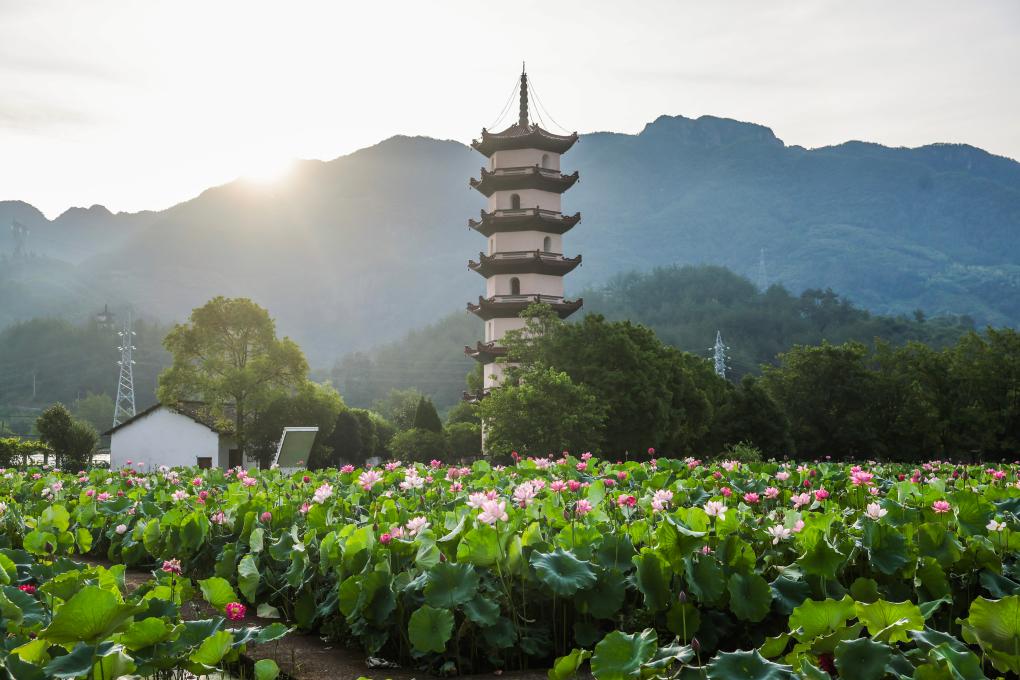 这是6月18日拍摄的武义县柳城镇十里荷花景区。该景区是十里荷花共富工坊荷花和莲子的主要产地。