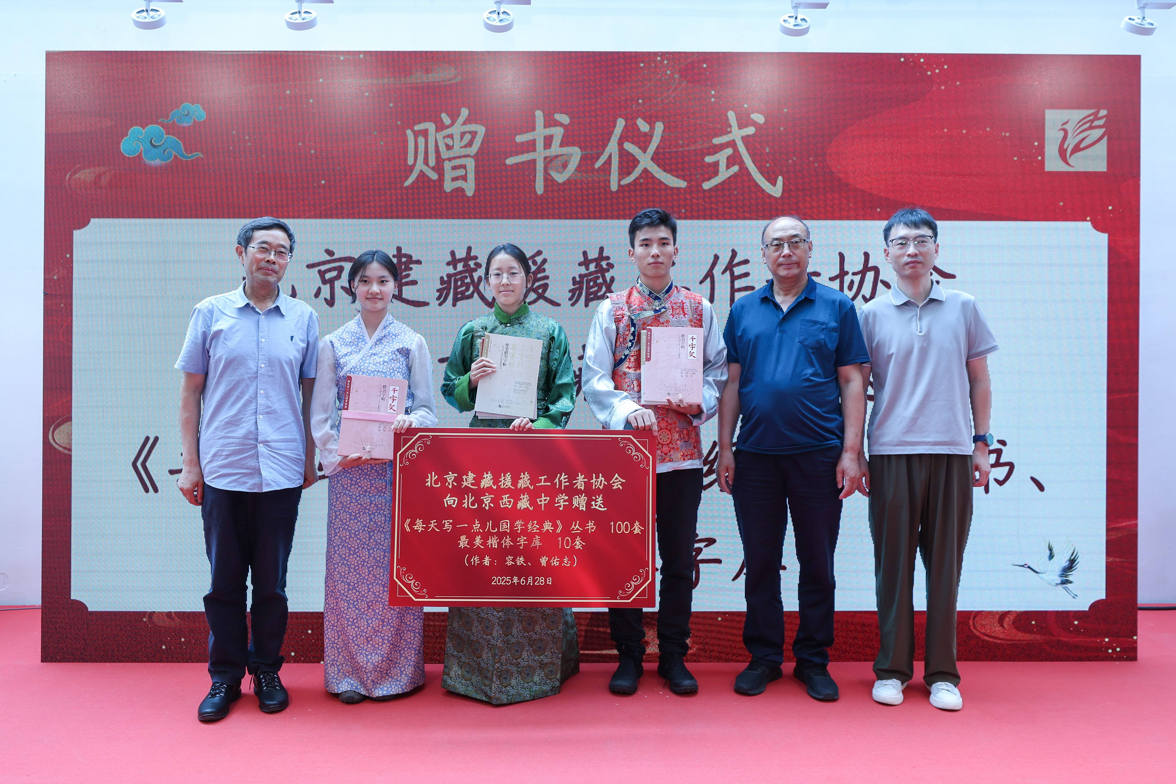 活动现场,相关爱心人士向北京西藏中学捐赠100套《每天写一点儿国学经典》丛书及10套“最美楷体”字库。北京建藏援藏工作者协会会长金书波寄语学生,“每天写一点、每天学一点,感受汉字的形神之美,领悟国学的智慧之光。”