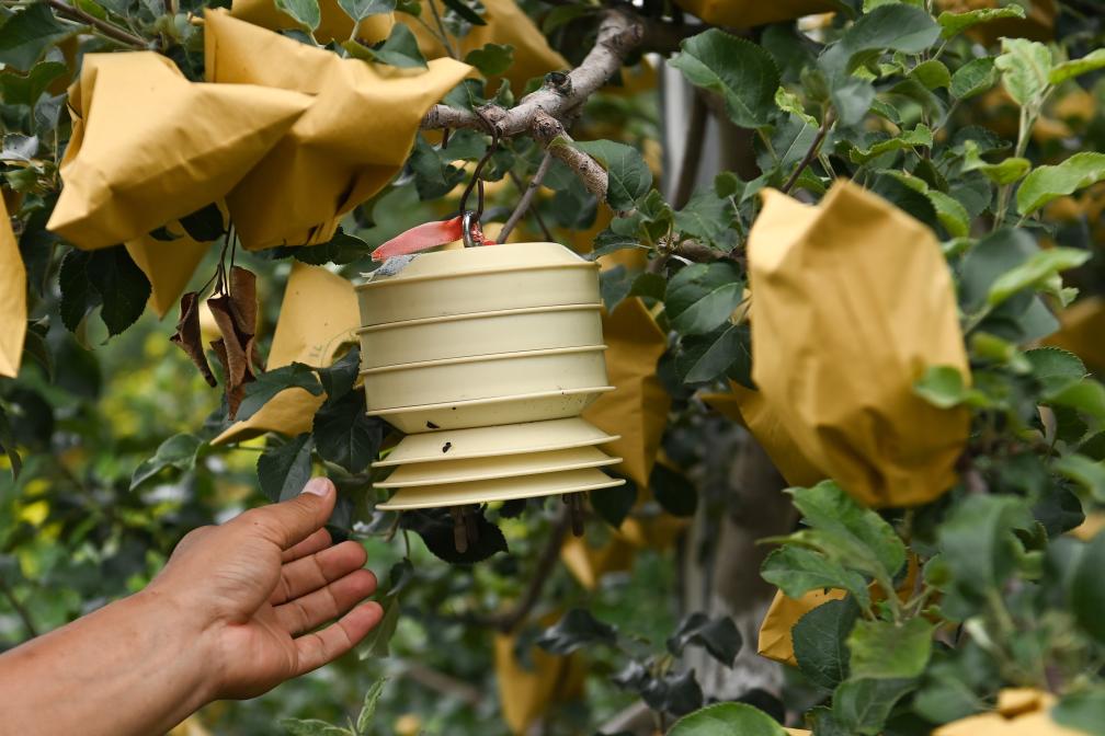 “每年四五月苹果花期时,最怕低温冻害,一场花期低温冻害就可能对果园造成毁灭性损失,现在多亏有了这个小东西!”志丹县农业农村局干部张宏指着一棵苹果树上挂着的像马灯一样的仪器说,这是两要素果园气象站,用来监测果园实时温度和湿度,乡亲们都叫它“气象小哨兵”。