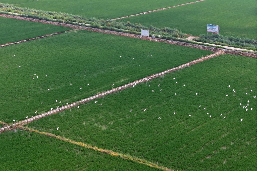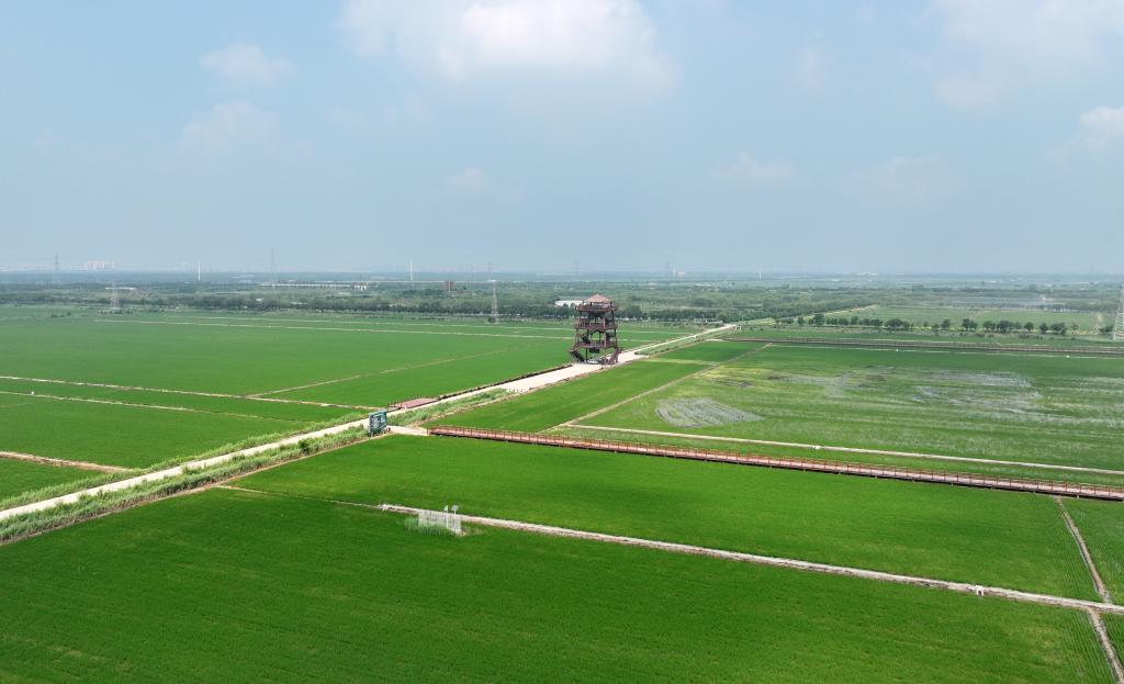 这是7月22日拍摄的天津市西青区王稳庄镇的水稻田一景(无人机照片)。