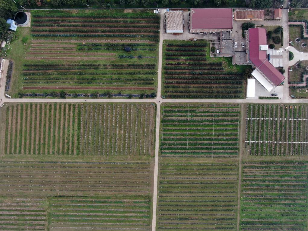 10月21日拍摄的西北农林科技大学白水苹果试验站(无人机照片)。