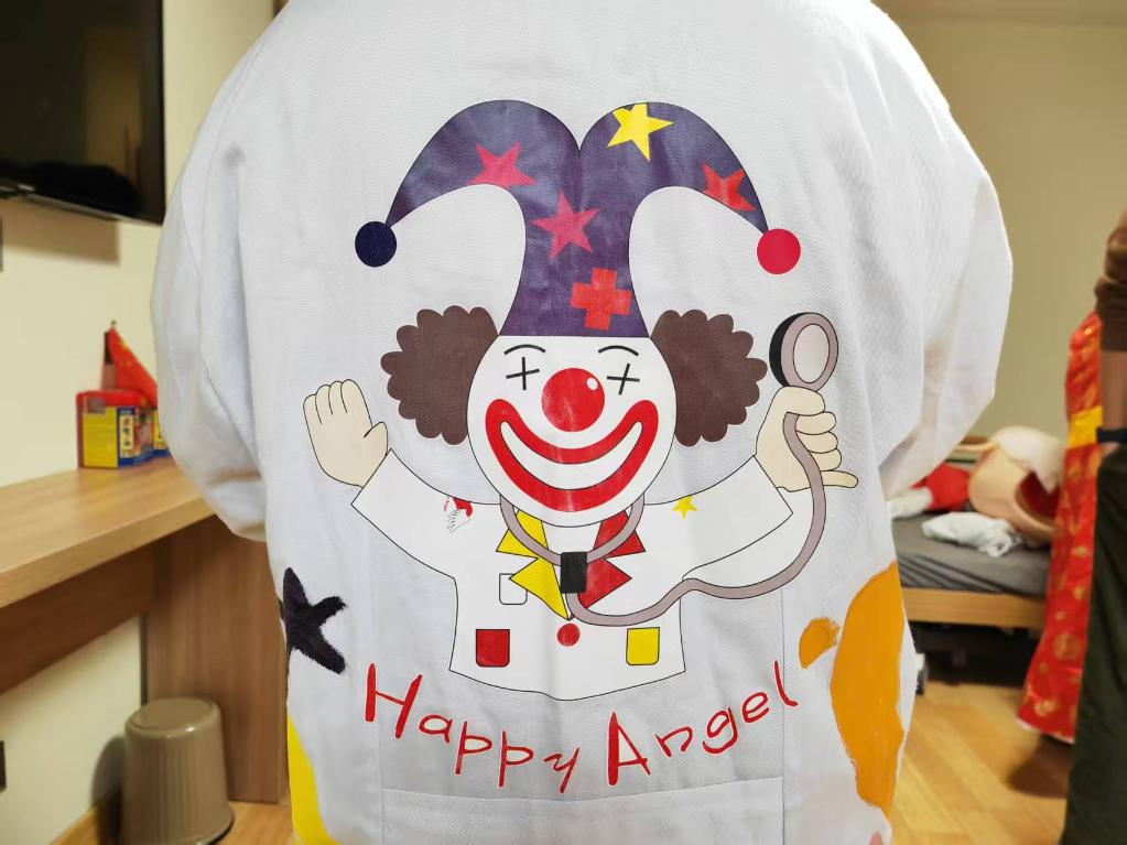 推门而入的是一群“小丑医生”志愿者。她们有的头顶五颜六色的假发,有的穿着喜气洋洋的衣服,有的白大褂上画满图案……每个人都手舞足蹈,脸上挂着温暖的微笑。
