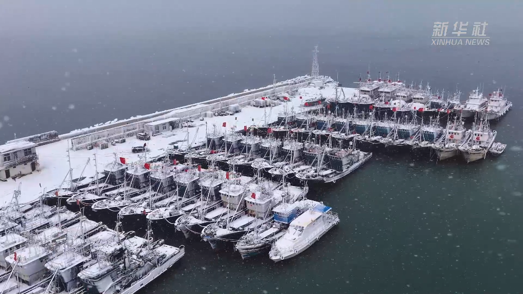 一场冬雪悄然降临,为山东烟台黄渤海新区的初旺渔港披上一层晶莹的银装。