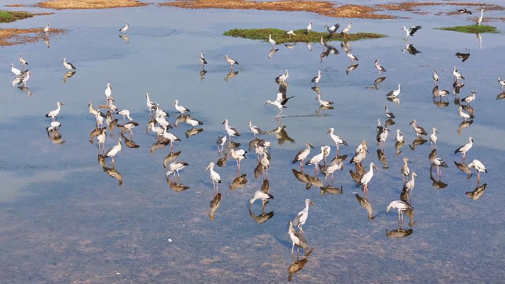 据了解,钳嘴鹳是国家二级保护野生动物,被誉为湿地生态“清道夫”,对水质与栖息地环境有较高要求。监测显示,今年三月已有数百只钳嘴鹳抵达普者黑。近年来,普者黑鸟类在种类和数量上都实现了显著增长,部分候鸟已经长期居住在此,繁衍生息。