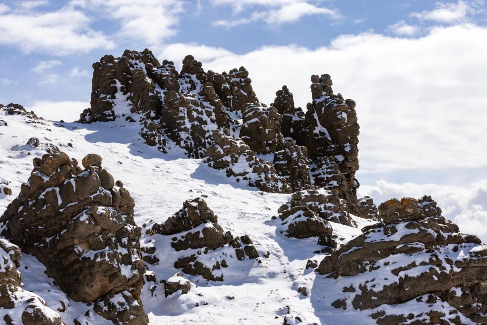 4月10日拍摄的“巴毛穷宗”地区玄武岩风蚀柱地貌。