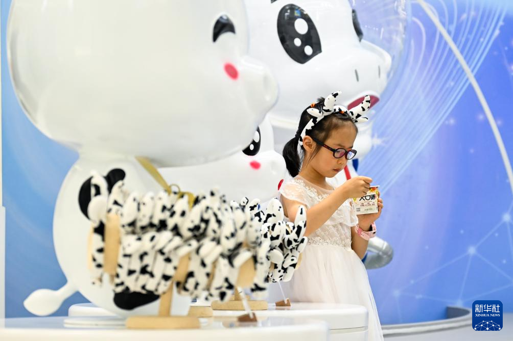 7月25日,小朋友在呼和浩特市伊利健康谷景区品尝乳制品。