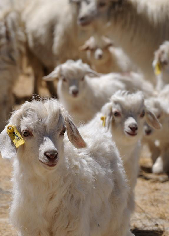 这是西藏日土县优质白绒山羊羊羔(2010年4月24日摄)。新华社记者 格桑达瓦 摄