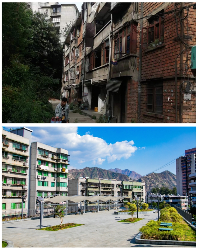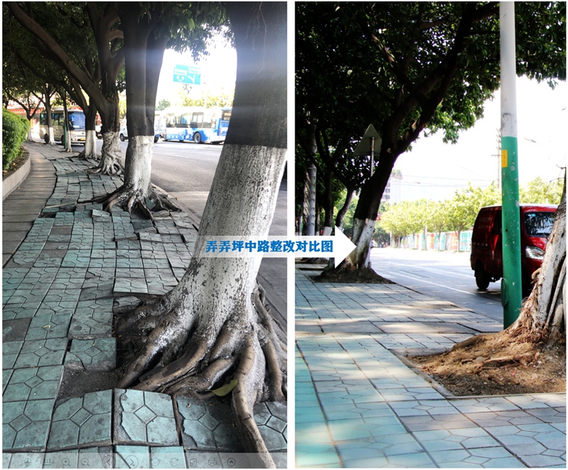 攀枝花弄弄坪中路人行步道整改前后(资料图)。新华网发(攀枝花市文明办供图)