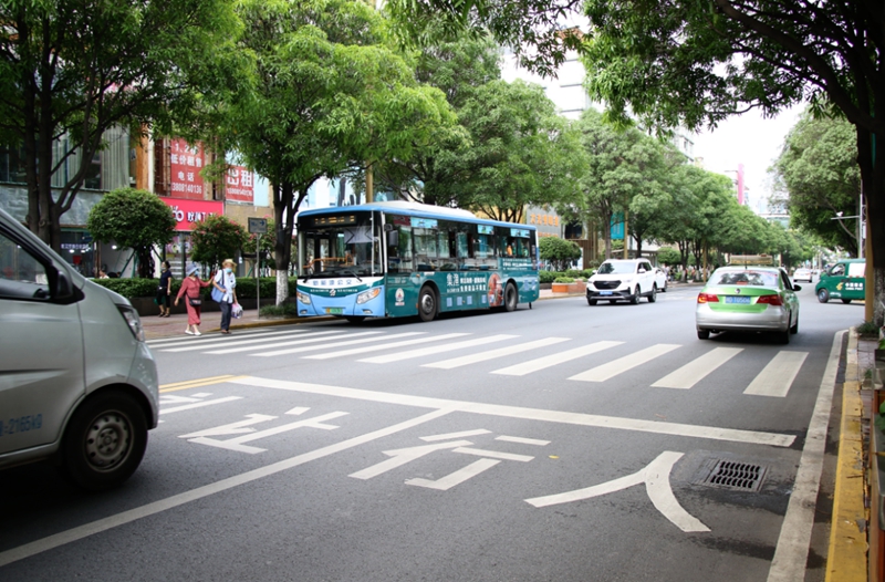 攀枝花“人车相让”自成一景(资料图)。新华网发(攀枝花市文明办供图)