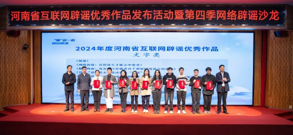 创新传播方式,唱响辟谣之声。12月4日,2024年度河南省互联网辟谣优秀作品发布活动暨“e起辟谣 清朗有我”网络辟谣沙龙在华北水利水电大学举行。《<清明上河图>里辟谣有妙方》《一指之念》《漯河:辟谣传声社》 等35部作品获评河南省互联网辟谣优秀作品,焦作市委网信办、郑州大学等8家单位获评优秀组织单位。