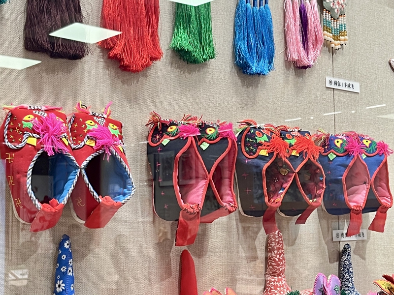 2月1日,传统手工艺品虎头鞋在临沂市非物质文化遗产馆展出,可爱的造型瞬间抓住了观众们的眼球,引得他们纷纷驻足观赏。新华网 张群 摄pagebreak