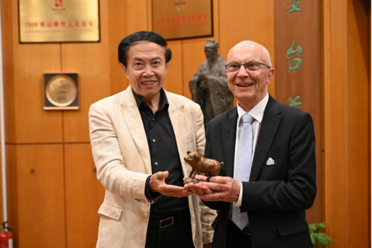 金台艺术馆馆长袁熙坤(左)与国际奥艺委主席马克·维埃尔。