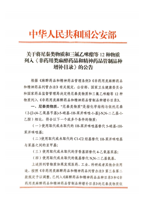 尼秦类物质和12种新精神活性物质的列管究竟是出于什么考虑?为什么要整类列管尼秦类物质?