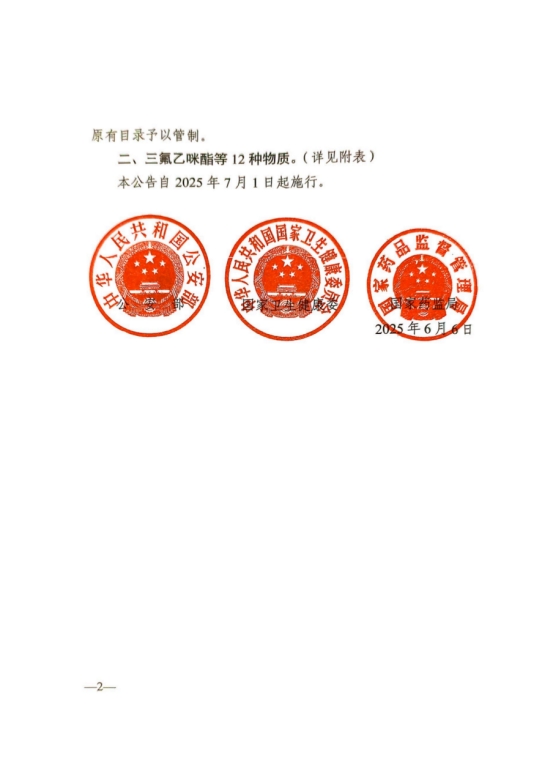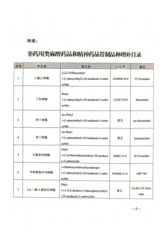 新华网北京6月19日电(记者刘军 钟奕)国家禁毒办19日发布《关于将尼秦类物质和三氟乙咪酯等12种物质列入<非药用类麻醉药品和精神药品管制品种增补目录>的公告》(全文附后)。