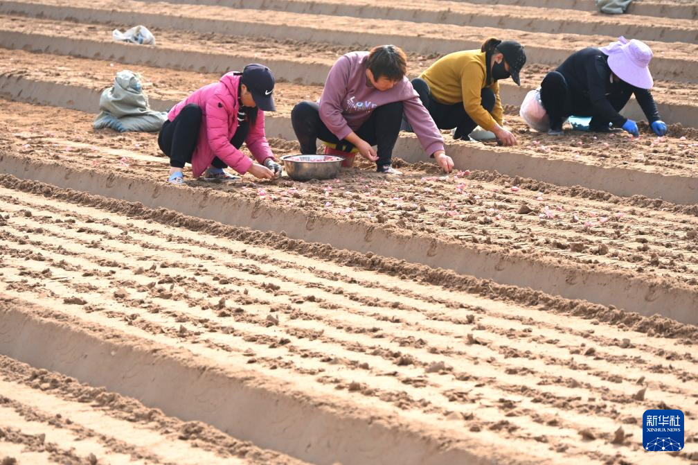 10月22日,农民在河南省开封市鼓楼区仙人庄街道何楼村田间种植大蒜。