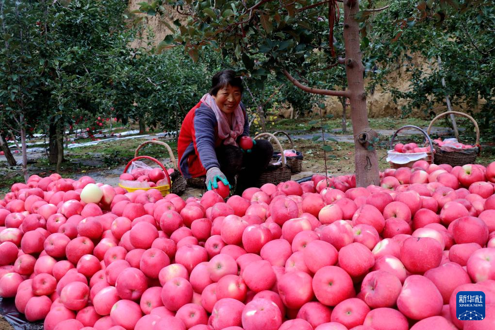 10月22日,在甘肃省平凉市静宁县贾河乡中堡村,果农在整理采摘的苹果。