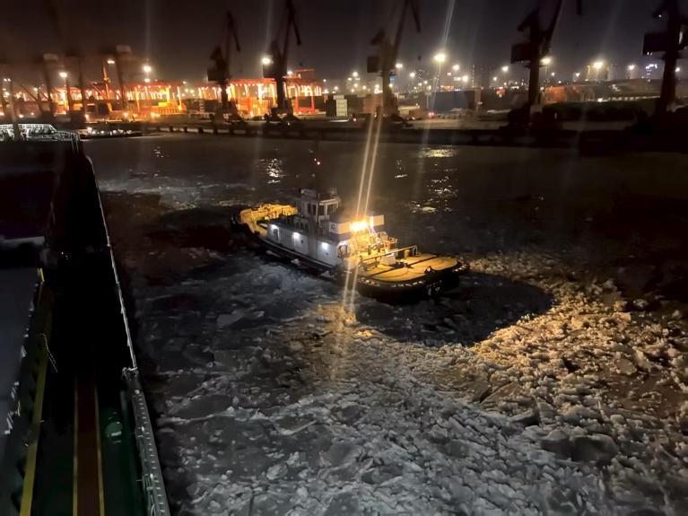 浪涌摇晃登船软梯,寒风凛冽刺骨,但引航员操作精准、指令铿锵。自入冬进入冰期以来,全站36名引航员全员在岗,主动放弃休假,24小时待命值守。引航站组建应急引航班组,骨干力量冲锋在前,全力应对冰期各类突发险情。从清晨到深夜,引航员往返于冰海与巨轮之间,单次数小时的高强度作业,考验着体力与意志。寒风冻僵身躯,却冻不住心中的责任。守护港口运转、保障物资畅通,他们用坚守筑牢港口畅通防线。