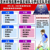 | 亚洲杯预选赛中国足球队与伊拉克队同组 (2006-01-04)