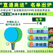![]() 国际乒联“直通奥运”名单出炉 | ![]() 中国博客数量达4700万 阅读动机主要为消遣娱乐 | ![]() 我国宽带用户数居全球首位 | ![]() 我国蔬菜出口量、水果产量均居世界第一 |