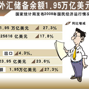![]() 2009年稻谷最低收购价上调约16% | ![]() 图表解读中央一号文件 | ![]() [2008年经济形势]2008年中国固定资产投资增长25.5% | ![]() [2008年经济形势]2008年末中国外汇储备余额1.95万亿美元 |