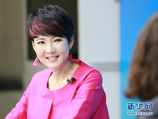 5月7日,在母亲节来临之际,华语世界身心灵作家张德芬做客新华网,与职场女性分享怎样活出自己的完美。图为张德芬与主持人交流。新华网 杨锘摄