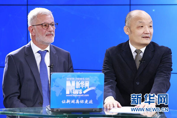 中国医药创新促进会执行会长宋瑞霖(右)和辉瑞核心医疗前首席医学官Salomon Azoulay(左)做客新华网《健康汇》特别访谈
