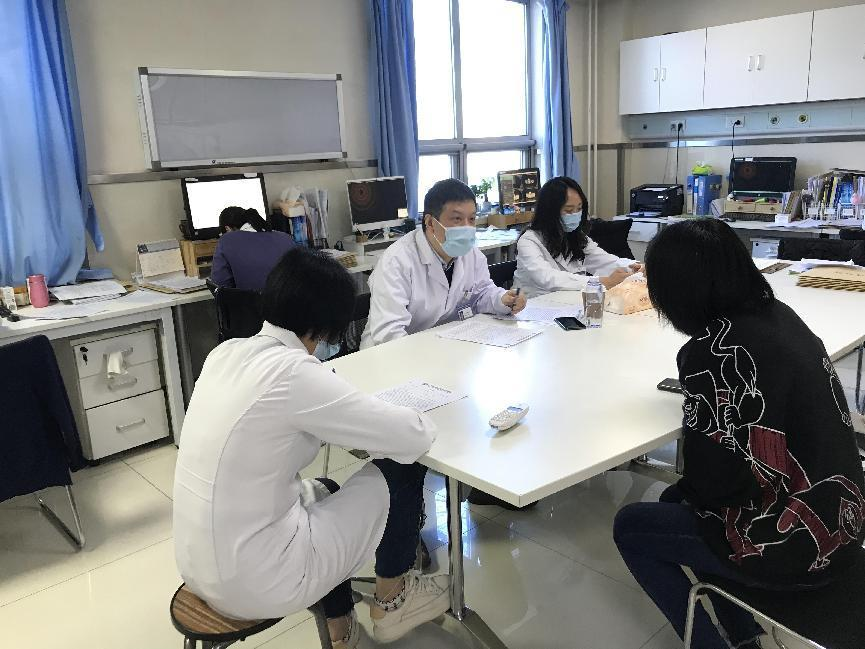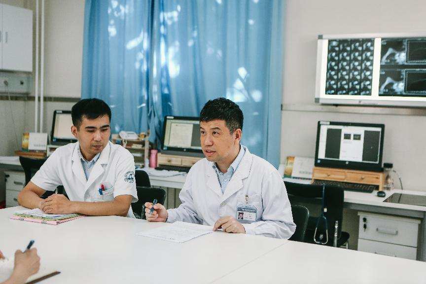 结束上午的门诊,中午便餐后,马飞又投入到紧张的工作中。住院病房走廊里,马飞与其他医生充分沟通交流,为接下来的查房工作做足准备。