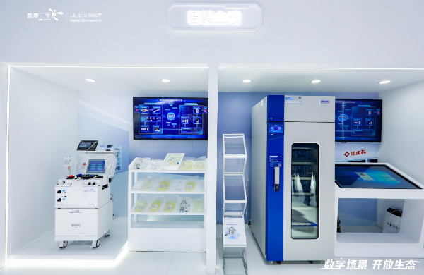 因此,海尔生物医疗持续推进物联网战略转型,发力场景生态,并洞察生物经济时代新机遇,进行战略升级,切入生命科学与医疗创新赛道,面向医院、高校科研、疾控、血站、生物制药企业等用户,提供数字医院、智慧实验室、智慧公卫、智慧血液等数字场景综合解决方案。在这次CMEF现场,海尔生物医疗展出的智慧药房、智能自动化细胞制备平台、自动化低温生物样本库等就是其中的典型代表。
